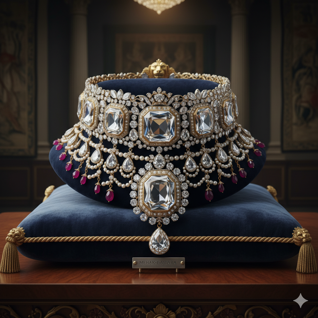The Mehek-e-Sitara stone is cut to reflect a diamond, tracing a history of imperialism through to the modern world, with a suitable price range and a royal look featuring gems and diamonds.