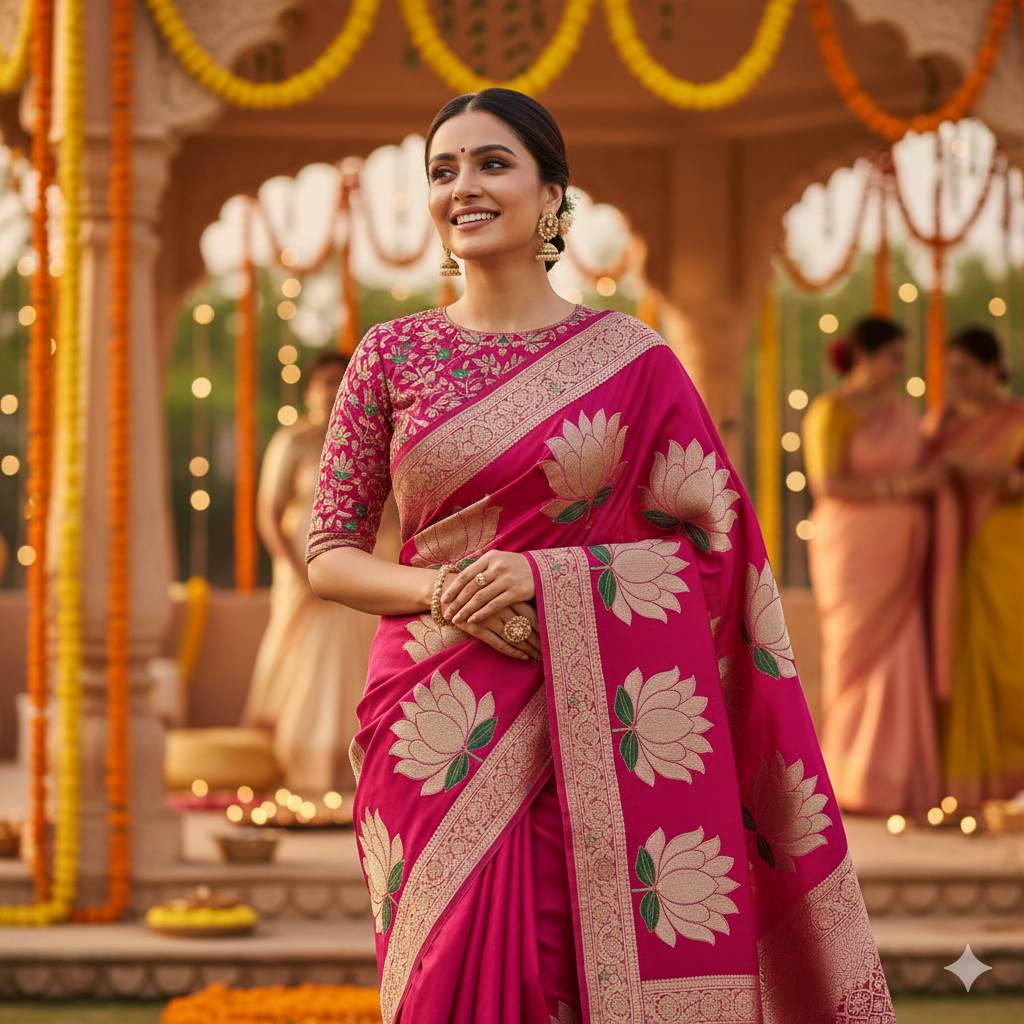 The Ruhi Phool saree (with blouse) comes from the soul of mulberry silk, specially designed for women to enjoy every festival with a smile. It drapes beautifully, and the silk is smooth, like the flower petals covering your body beautifully and reflecting the genuine freedom and power at a time.
